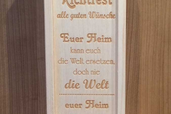 - Lasergravuren auf Holz, Leder, Acryl, Glas, Schiefer